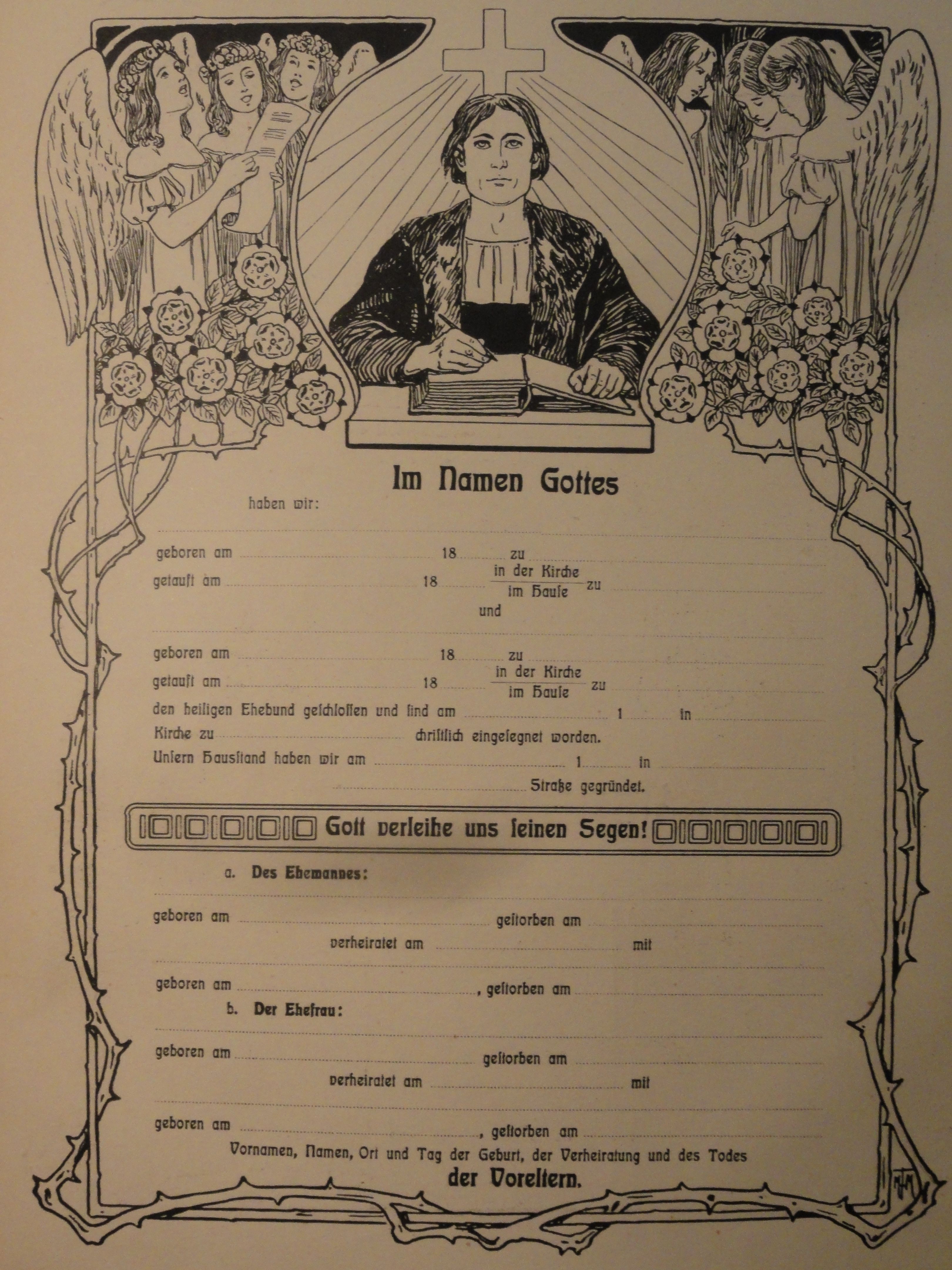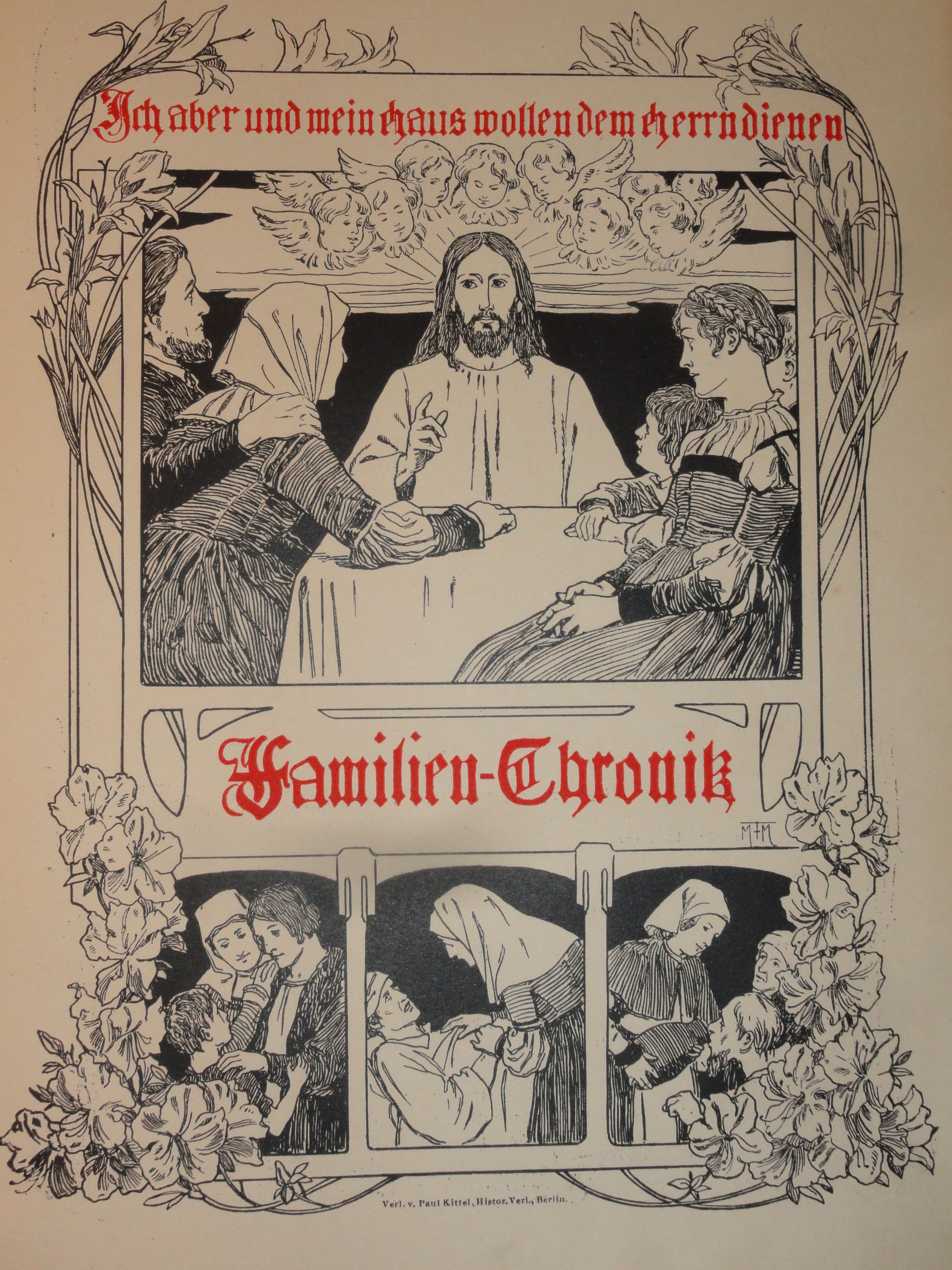 mit einer ausdrucksstarken Jugendstil-Prägung auf den Buchdeckel (Grundfarbe Blau) unter Verwendung von Gold und Silber,