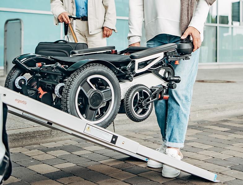 Ein Elektrorollstuhl kann nicht unkontrolliert die Rampe herunterrollen.