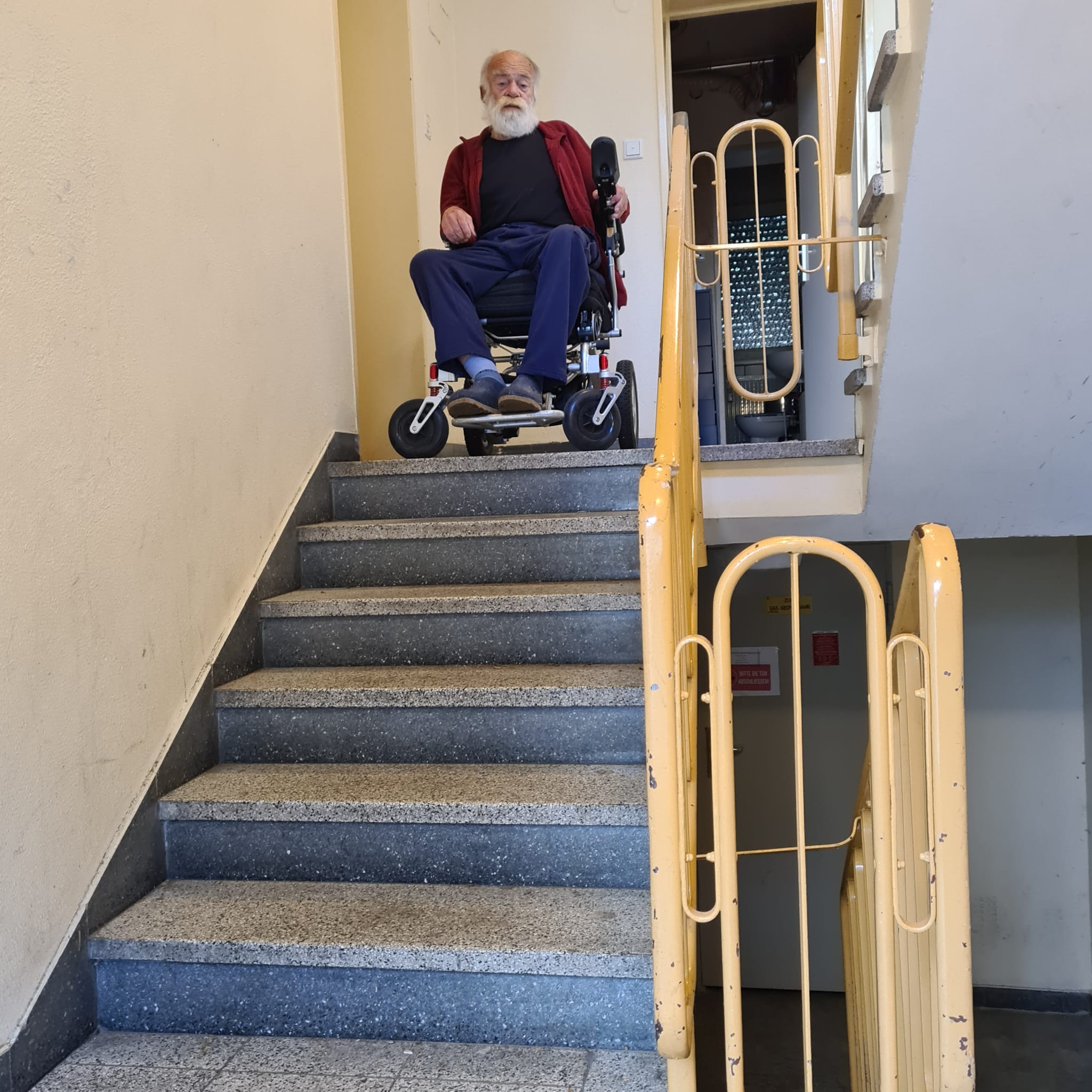 Es geht darum das der Rollstuhl aus eigener Kraft über die Treppe transportiert werden kann,